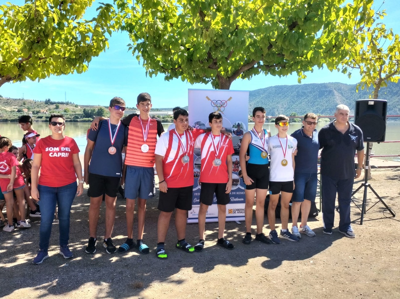 Deportistas de los clubes Capri de Mequinenza, Centro Natación Helios, y Club de Remo Tortosa, de categorías alevín, infantil, cadetes y veteranos, han competido durante la mañana del domingo en las distintas pruebas organizadas.